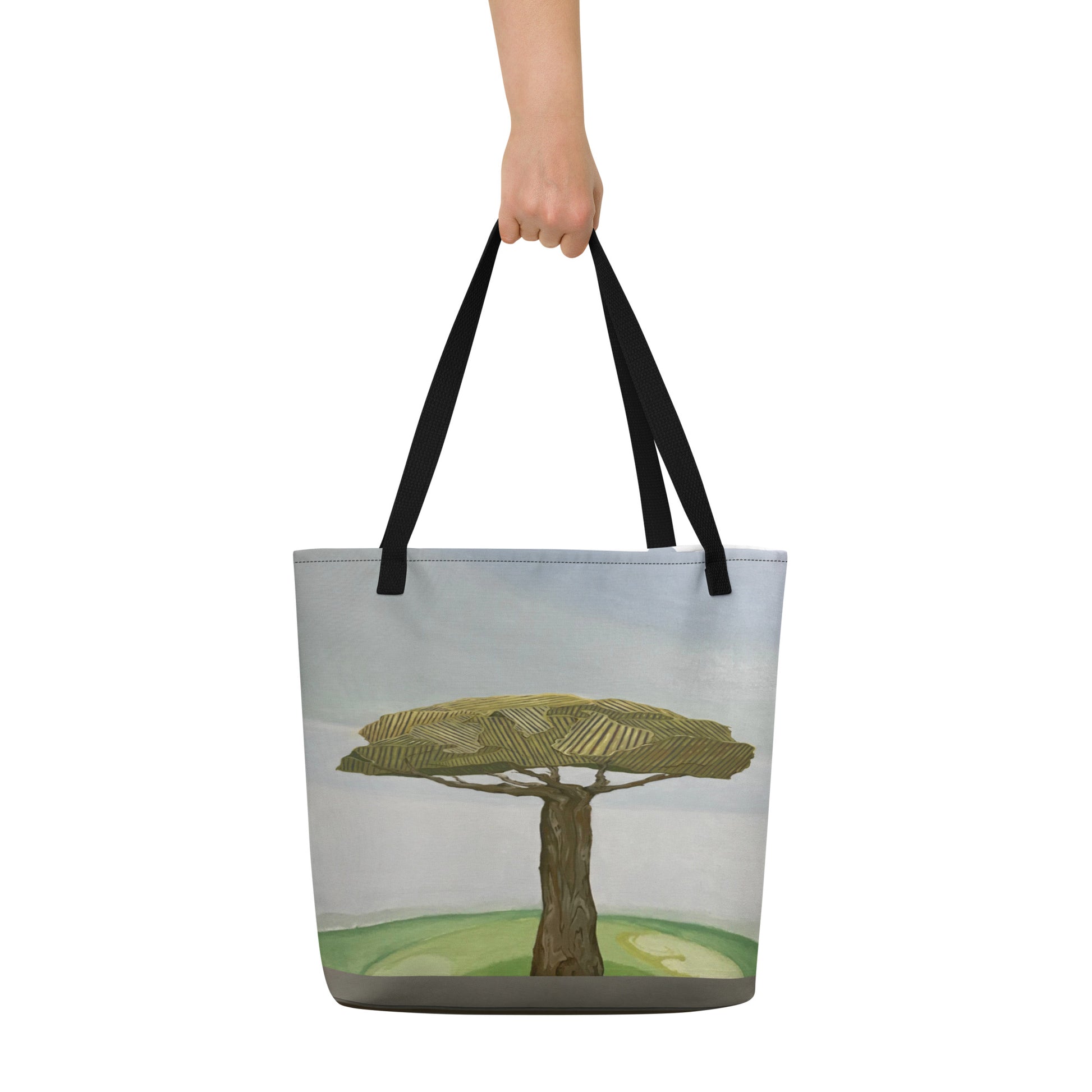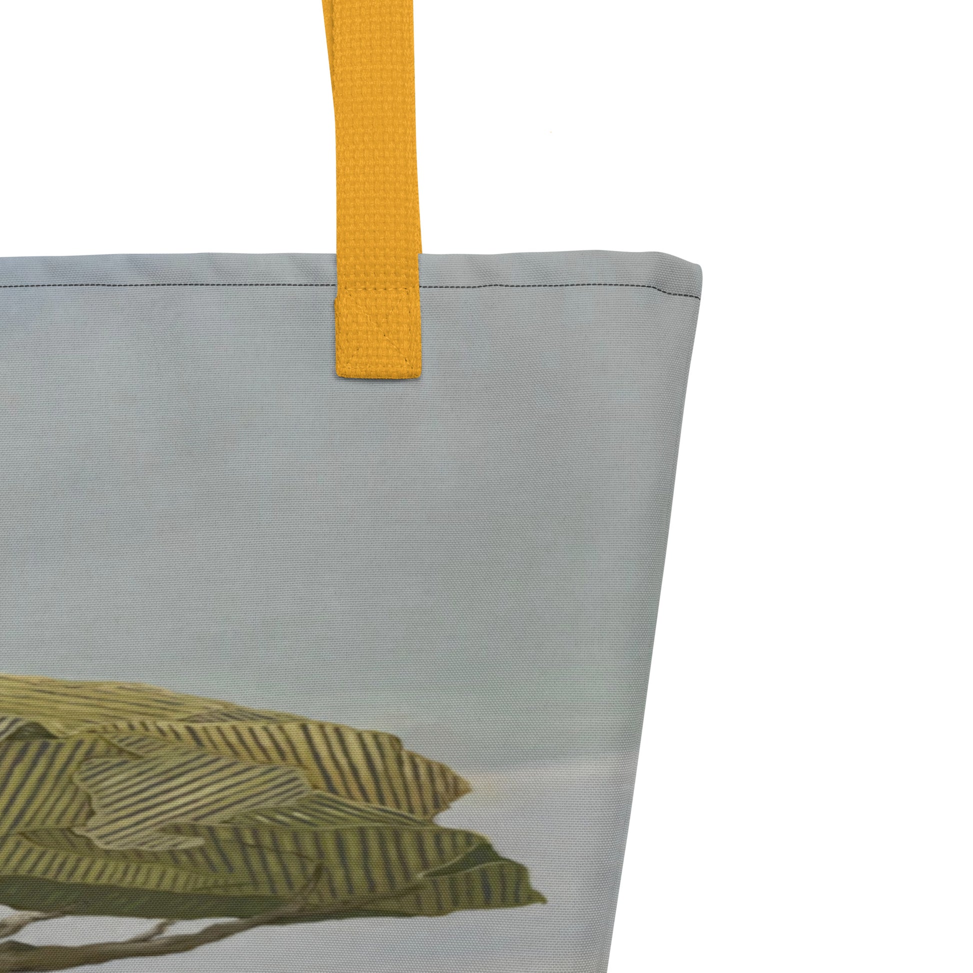A trendy large tote bag, where you can put everything that matters. Featuring original designs by local artists.